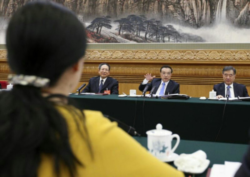 中新網(wǎng)3月10日電 李克強(qiáng)總理3月10日上午來到十二屆全國人大五次會議安徽代表團(tuán)參加審議。