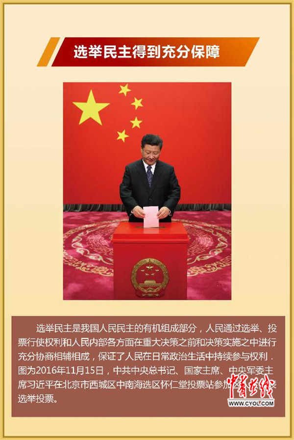 展區(qū)內(nèi),一張2016年11月15日,中共中央總書記、國家主席、中央軍委主席習(xí)近平在北京市西城區(qū)中南海選區(qū)懷仁堂投票站參加區(qū)人大代表選舉投票的照片吸引了王玉(化名)的目光。今年剛剛參加工作的王玉在大學(xué)時曾參加過一次人大代表的選舉投票,“那是我第一次參加人大代表的選舉投票,當(dāng)時感覺十分神圣,今天看到總書記和我們一樣行使著自己的投票權(quán),十分親切!”