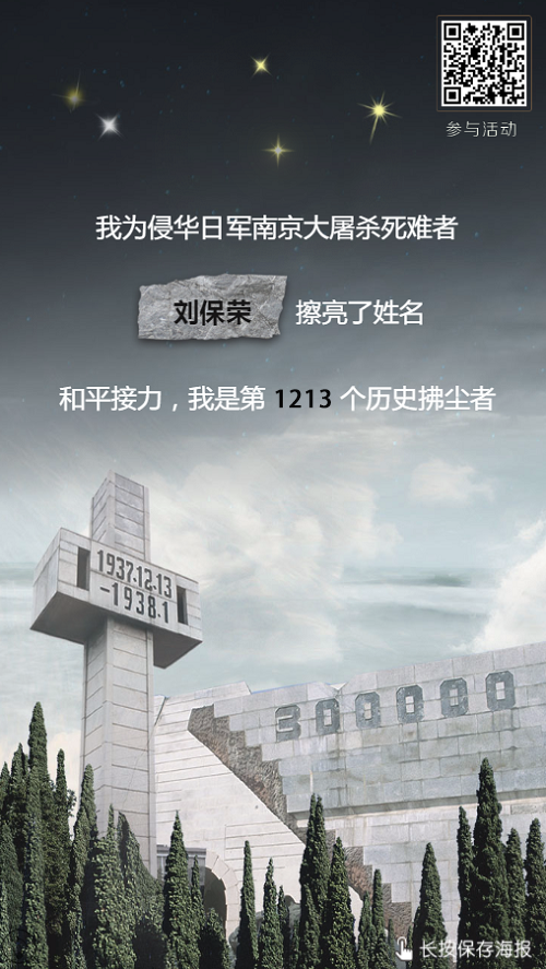 頁面上同時會生成獨屬于你的那張海報。長按即可保存海報,永久紀念這份刻骨銘心的歷史,永久記錄這份守護真相的行動。