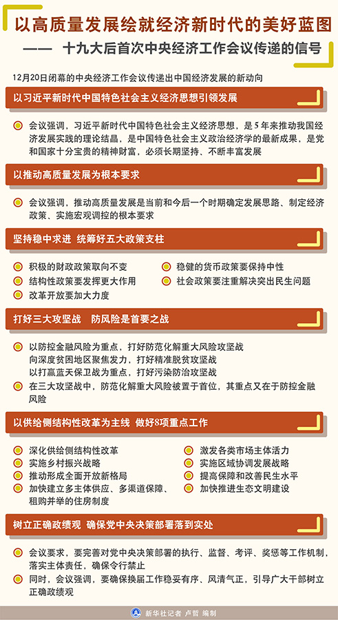 新華社北京12月20日電  題:以高質量發展繪就經濟發展新時代的美好藍圖——十九大后首次中央經濟工作會議傳遞的信號