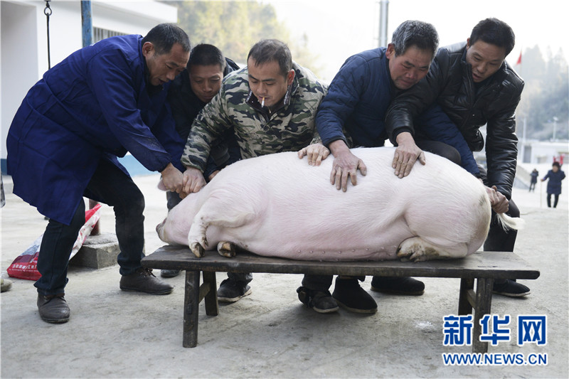 圖為殺年豬的場景。新華網(wǎng) 歐陽小潔 攝