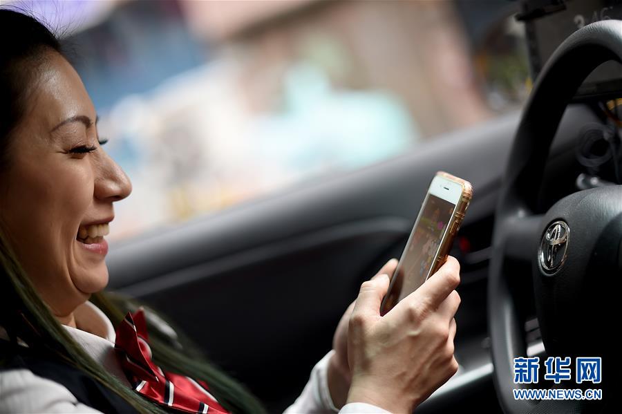 1月25日,“的姐”王婕玲偶爾玩玩游戲舒緩疲憊。35歲的臺(tái)北“的姐”王婕玲在臺(tái)灣大車隊(duì)股份有限公司當(dāng)出租車司機(jī)。她18歲考取駕照,3年前偶然機(jī)會(huì)開上出租,每天“朝九晚九”的節(jié)奏,要工作10到14個(gè)小時(shí)。王婕玲每天給自己定個(gè)小目標(biāo):工作日賺4000元新臺(tái)幣,節(jié)假日賺6000元新臺(tái)幣。一天跑完這個(gè)數(shù)額才算完成任務(wù),回家睡覺。在游客多的時(shí)候,王婕玲不僅在臺(tái)北市區(qū)載客,還經(jīng)常被游客包車在整個(gè)臺(tái)灣島出行。為此,她專門研究臺(tái)灣的旅游景點(diǎn)和經(jīng)典線路,邊開車邊當(dāng)導(dǎo)游。出租車司機(jī)的收入并不低,但在臺(tái)北卻很少遇到年輕人開出租車,大多數(shù)是從其他職業(yè)轉(zhuǎn)行而來的。王婕玲爺爺?shù)睦霞以诤颖笔。瑺敔斣谑罆r(shí)曾經(jīng)回去探親,她還沒有機(jī)會(huì)去過大陸。她說,等有機(jī)會(huì)一定回爺爺?shù)睦霞铱纯矗惨ド钲谝娨娕笥选P氯A社記者 岳月偉 攝