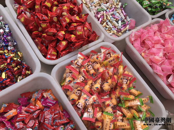2月14日,邯鄲市永年區茹佐村年貨市場中一個攤位上五顏六色的糖果。(中國臺灣網 張亞靜 攝)