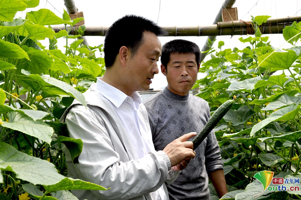 裴春亮(左)在了解蔬菜生產情況。本人供圖