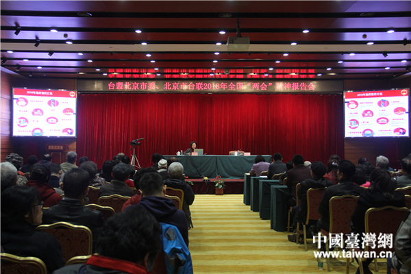 臺盟北京市委、北京市臺聯舉辦2018年全國“兩會”精神報告會(中國臺灣網 汪明珠 攝)