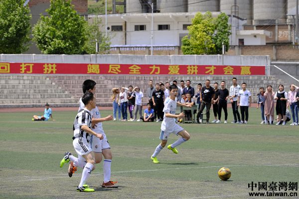 學生在踢足球。(中國臺灣網發 秦飛 攝)