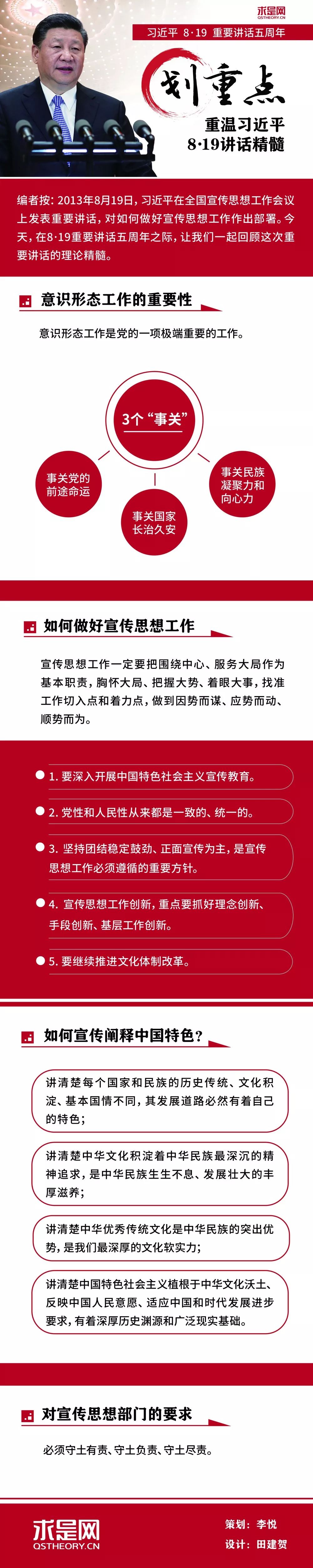 【“學(xué)習(xí)筆記”按】2013年8月19日,習(xí)近平在全國宣傳思想工作會議上發(fā)表重要講話,對如何做好宣傳思想工作作出部署。今天,在8·19重要講話五周年之際,讓我們一起回顧這次重要講話的理論精髓。