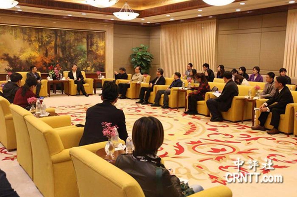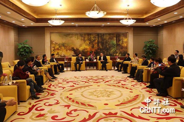 會見兩岸網(wǎng)絡(luò)新媒體參訪團(tuán)現(xiàn)場。(圖片來源:中評社)