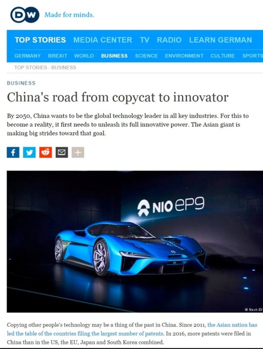 中國從模仿者到創新者的道路。圖片來源:德國之聲網站報道截圖