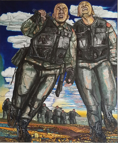 說“不一樣”,是想說,藝術貴在不同,也難在不同。這種“不一樣”,直觀在形式語言,審美也由形式語言——或者說,通過形式語言——感受審美,進入思想,體現藝術價值。因為現代美學轉向,語言成為“本體”,形式“恢復”本來面目。這些畫作,雖出同門,但狀貌、形態有所不同,內在思想也有所別,并均以現實主義理念創作,是主旋律,也是正能量。