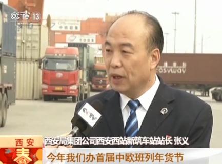 西安局集團公司西安西站新筑車站站長 張義:今年這個年貨節也是因為品種豐富了,40多個國家的13大種類,大批量的年貨進入國內。隨著中歐班列量的劇增,原有的線路有22條,即將投入使用的達到了48條。