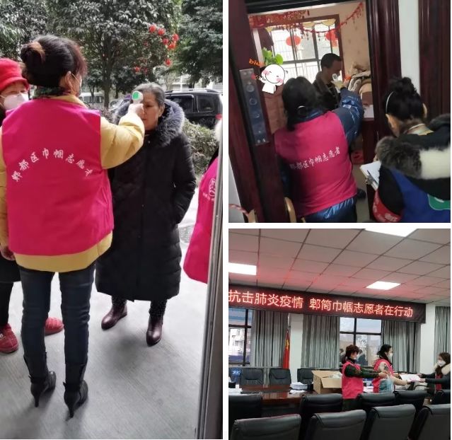 成都市郫都區的巾幗志愿者放棄春節休假,到各街道(鎮)、村(社區)發放宣傳資料、防護用品。
