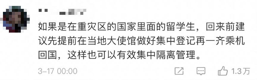 一些網友認為,祖國永遠歡迎自己的兒女回來,但為了防控疫情,歸國人員不應瞞報身體狀況,并要配合國內集中隔離管理。↓↓↓