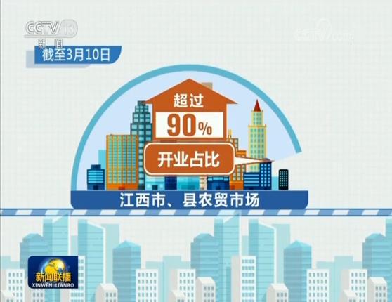 一項項政策,換來的是江西商貿(mào)服務(wù)業(yè)復(fù)產(chǎn)復(fù)工不斷提速。截至3月10日,江西市、縣農(nóng)貿(mào)市場開業(yè)占比超過90%,連鎖便利店門店開業(yè)占比達(dá)85.1%。