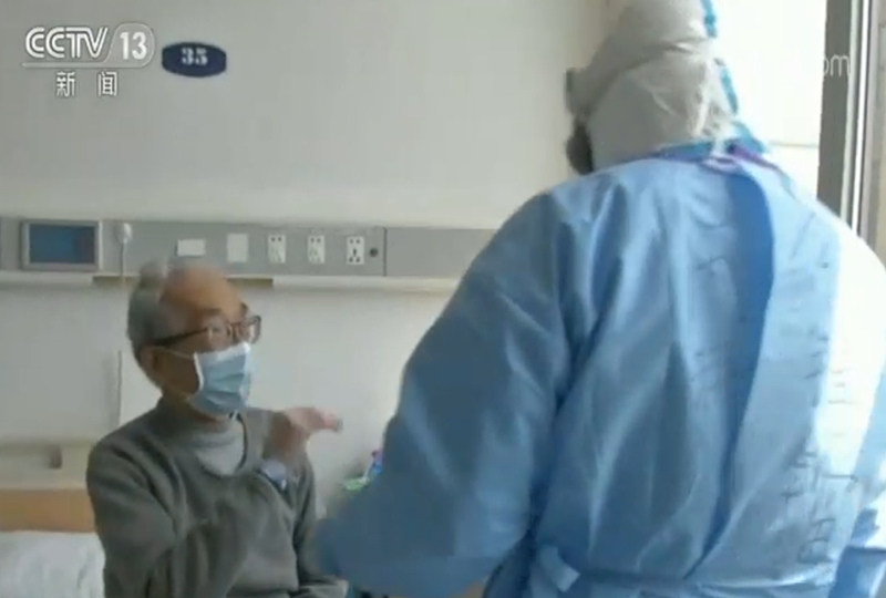 在武漢大學人民醫院東院區,心內科副主任余鋰鐳正在為一位81歲的新冠肺炎重癥患者佩戴便攜式心臟事件記錄儀。