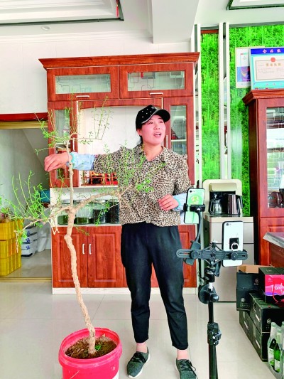 王航弟在家里放了一盆枸杞盆栽,以方便在直播時(shí)向一些沒(méi)見(jiàn)過(guò)枸杞樹的顧客展示。光明日?qǐng)?bào)記者 王建宏攝