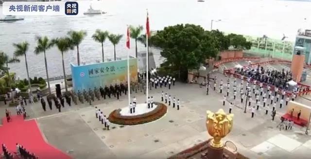 △香港特區(qū)政府成立23周年,香港灣仔金紫荊廣場早上8時舉行升旗儀式。