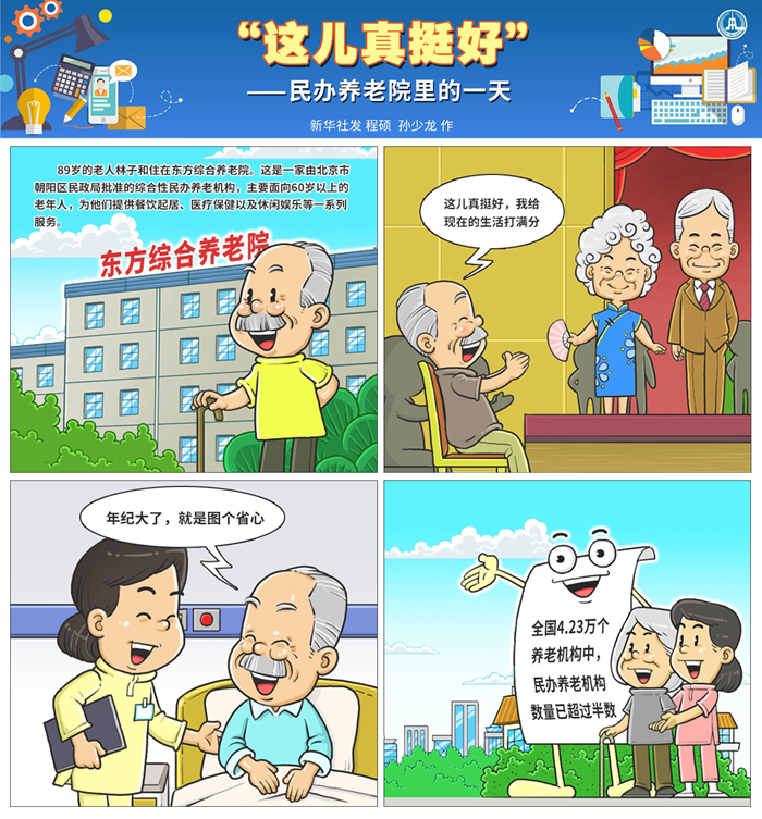 “相對于公辦養老機構來說,靈活、高效是我們的最大優勢!睎|方綜合養老院院長喬穎說,近年來國家加大改革力度,不斷放開養老服務市場,在各級民政部門的支持下,民辦養老機構管理手段靈活、服務層次多元的優勢得以最大化發揮,為老年人提供了更為豐富的養老選擇。