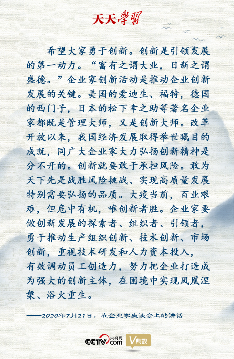 在講話當中,總書記多次談到“創新”一詞。而創新,也正是國民經濟賴以不斷發展的內生動力。上個月,總書記在主持召開企業家座談會時也特別強調了創新對于企業發展的關鍵作用,并引用了一則典故來闡釋創新的重要性。他說——