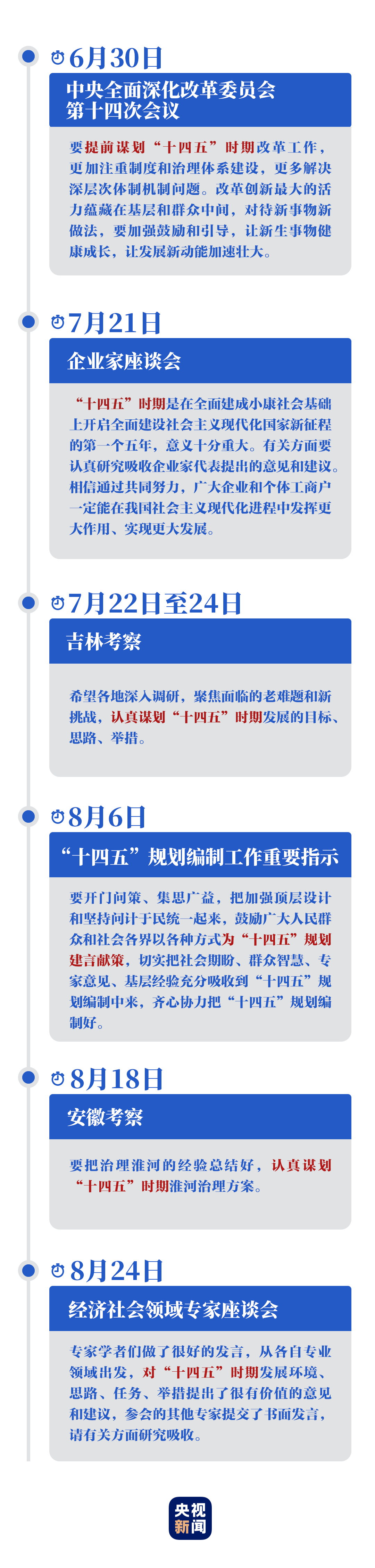 今年以來,習近平總書記多次主持召開重要會議、赴地方考察,就“十四五”開門問策,聽取大家對當前經濟形勢、“十四五”規劃的意見和建議,強調要集思廣益、齊心協力把“十四五”規劃編制好。