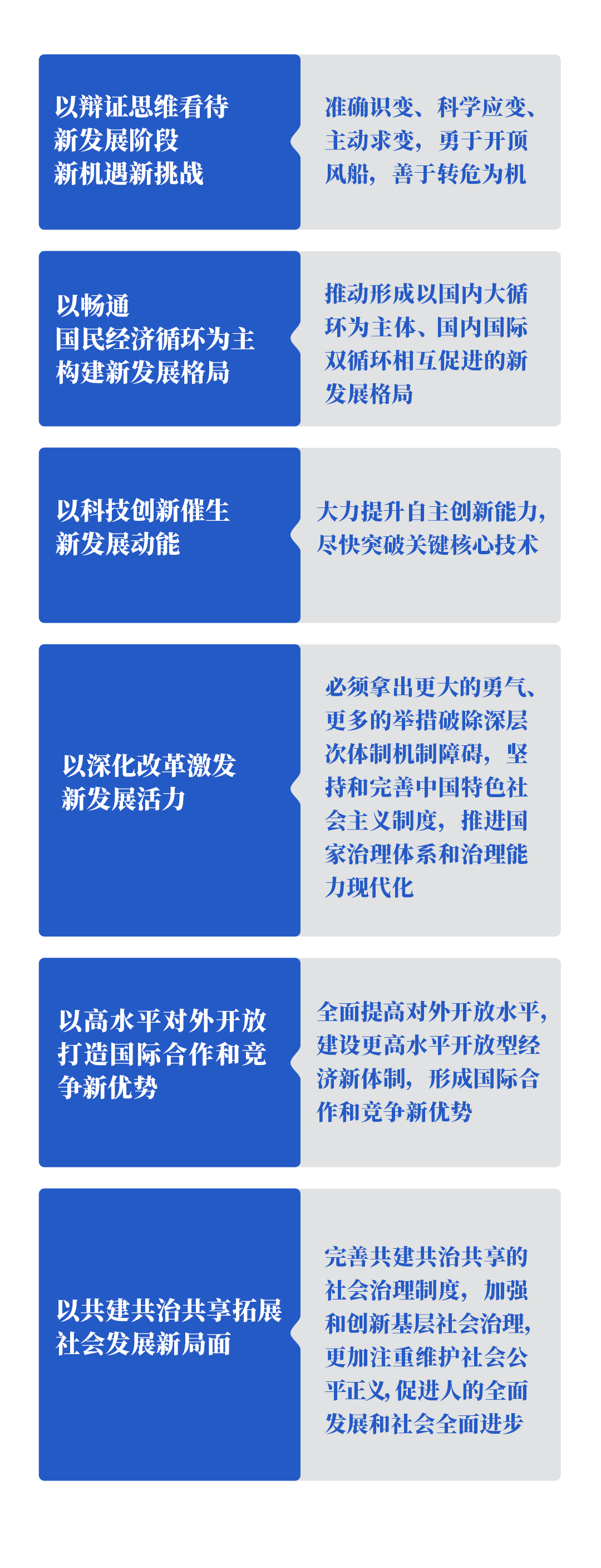 在經濟社會領域專家座談會上,習近平從黨和國家事業發展的戰略全局出發,從新發展階段、新發展格局、新發展動能、新發展活力、國際合作和競爭新優勢、社會發展新局面等方面提出要求。這六點要求為正確認識和把握中長期經濟社會發展重大問題指明了方向,是“十四五”規劃編制和未來經濟社會發展的重要遵循。