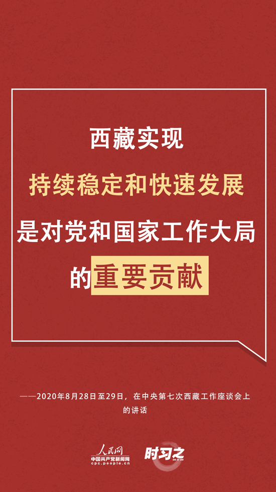 “黨中央關于西藏工作的方針政策是完全正確的,西藏實現持續穩定和快速發展是對黨和國家工作大局的重要貢獻。”座談會上,習近平代表黨中央向奮斗在雪域高原的廣大同志們致以了誠摯的問候。