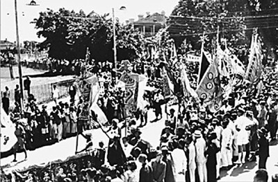 1945年香港社會(huì)各界慶祝抗戰(zhàn)勝利。資料圖片