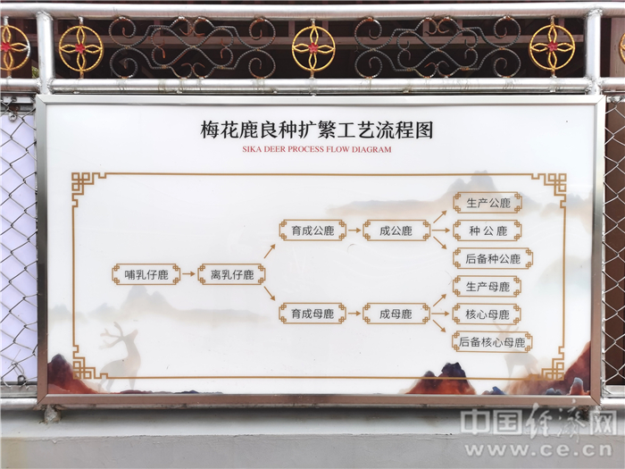 梅花鹿良種擴繁工藝流程圖。經濟日報-中國經濟網記者宋雅靜/攝