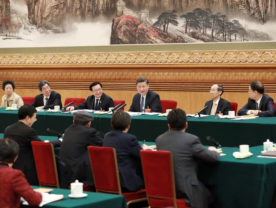 △2019年3月8日,習近平參加十三屆全國人大二次會議河南代表團的審議。