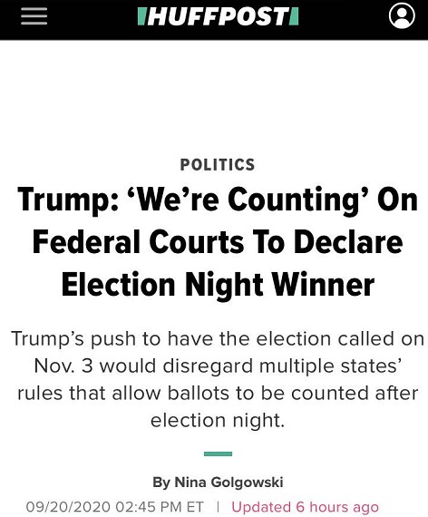 特朗普最近一次表態(tài)透露了他對聯(lián)邦最高法院的“信任”。9月19日在北卡羅來納舉行的競選集會上,特朗普稱,相信聯(lián)邦法院會保證計票結(jié)果在大選結(jié)束后數(shù)小時內(nèi)就予以公布,而“不需要在選舉一周或兩周后還在統(tǒng)計選票”。 眾議員唐·拜爾認(rèn)為,“這是特朗普公開承認(rèn)希望利用最高法院竊取選舉勝利”,如此言論是赤裸裸地“利用聯(lián)邦法院舞弊,否認(rèn)民眾依法郵寄選票的權(quán)利”。