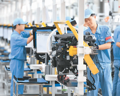 今年以來,上海汽車集團股份有限公司乘用車福建分公司通過稅務部門享受社保費減免約197萬元,減稅紅利為企業生產和產業高質量發展注入動力。圖為工人在上汽集團乘用車寧德基地總裝車間內裝配汽車儀表中控。