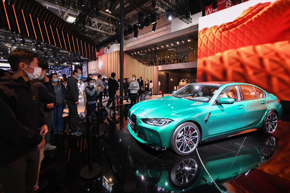 ↑10月4日,觀眾在寶馬汽車展臺(tái)參觀展出的汽車。 新華社記者鞠煥宗攝