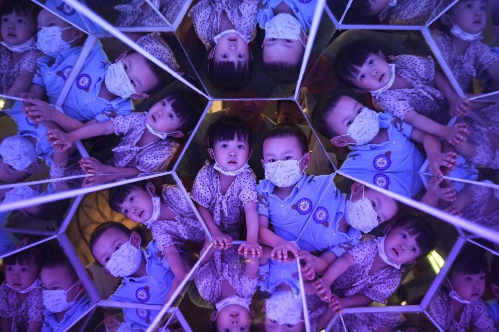 ↑10月4日,小朋友在廣東科學(xué)中心體驗(yàn)萬(wàn)花筒。新華社記者 鄧華 攝