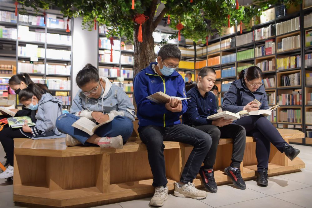 ↑10月5日,讀者在呼和浩特市青城閱立方書店讀書。新華社記者 李志鵬 攝