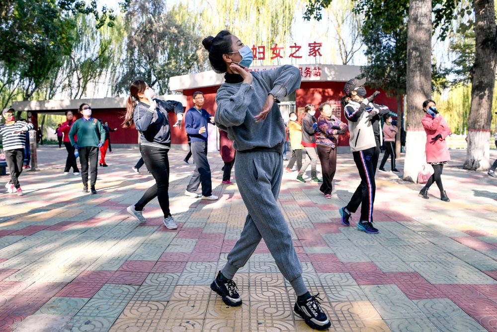 ↑10月5日,市民在銀川中山公園跳廣場(chǎng)舞。新華社記者 馮開華 攝