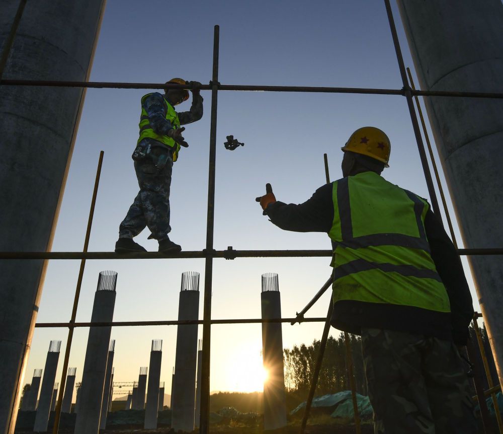 ↑10月4日清晨,工人在京秦高速公路工程遵秦段遵化境內(nèi)施工。新華社發(fā)(劉滿倉(cāng) 攝)