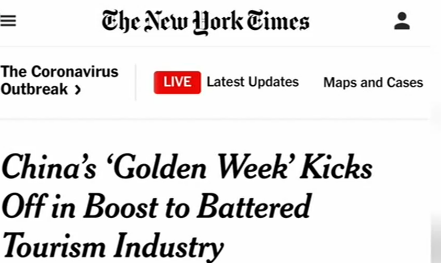 《紐約時報》近日發表題為《中國“十一”黃金周提振遭受重創的旅游業》的報道,認為中國已經以驚人的速度恢復到接近正常狀態。