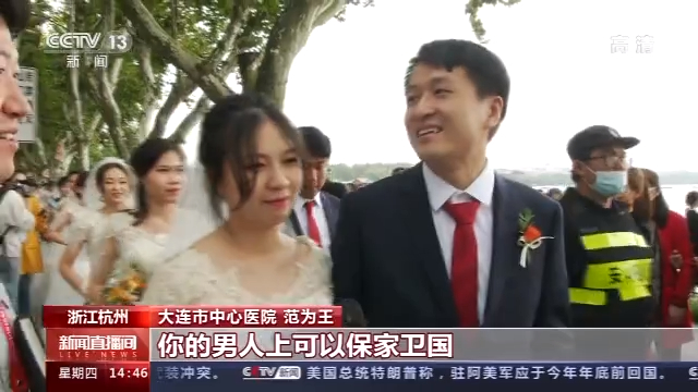 來自遼寧大連的范為王是一名住院醫師,疫情暴發時,他第一時間遞交請戰書,參與救治病人。而今天,他又在西湖邊,向妻子許下了愛的諾言。