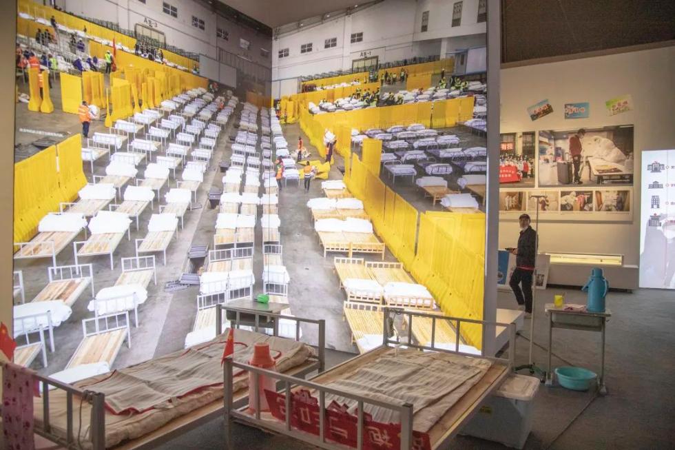 同時,通過沙盤模型、照片、視頻等,展現約4萬名建設者從八方趕來,用10天左右時間建成“兩山”醫院的壯舉。