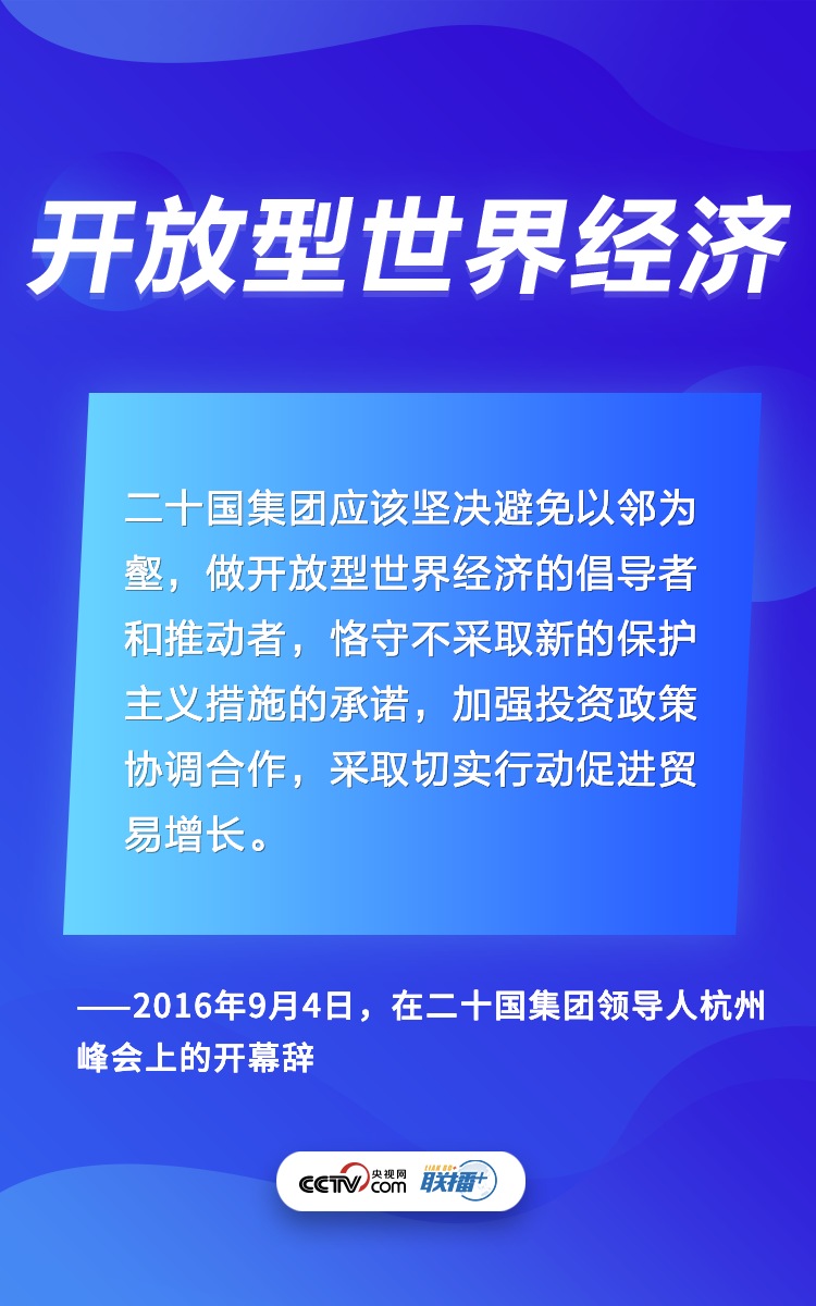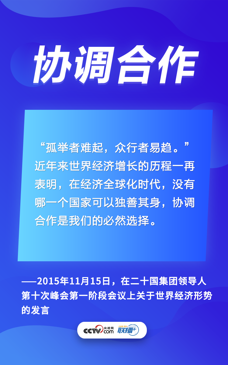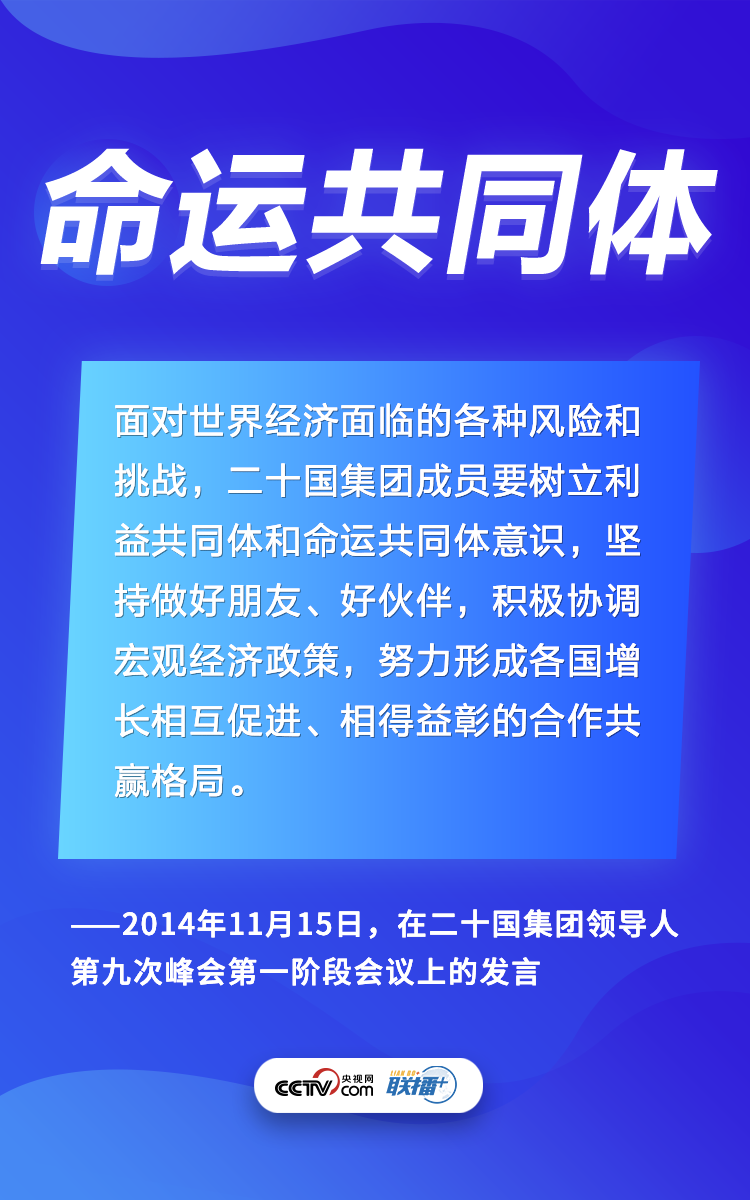 二十國集團是國際經濟合作主要論壇。多年來,習近平主席在峰會講話中倡議各國聯手,齊心協力應對世界經濟和全球治理的各種問題。央視網《聯播+》梳理習主席相關論述,與您一起學習體會。