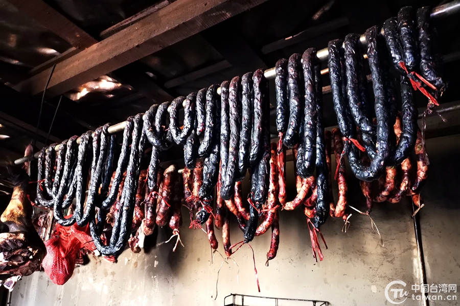 吉地爾子家的廚房里,掛滿了曬好的臘肉和香腸。(中國(guó)臺(tái)灣網(wǎng) 尹賽楠 攝)