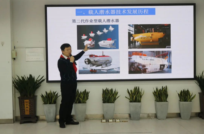 在啟動儀式上,楊波通過《載人潛水器》主題講座,向學生們講述了我國載人潛水器的發展歷程,分享了深海勇士在探索深潛的奮斗路上克服困難的種種經歷。