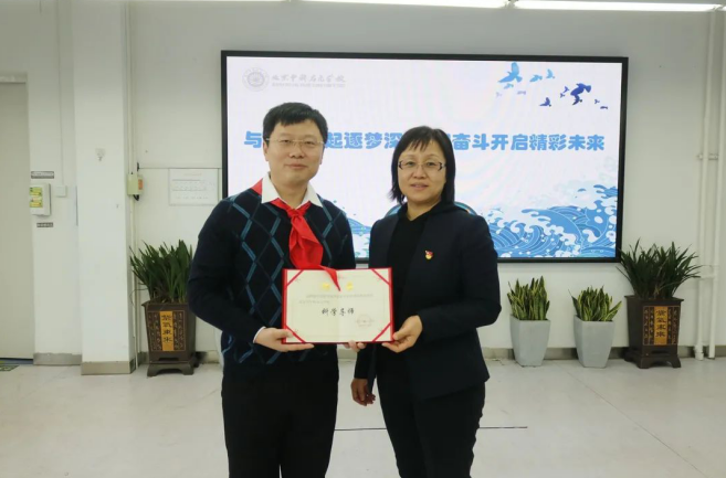 中科啟元學校黨支部書記王群英向中科院聲學所研究員、11000米“全海深載人潛水器”副總設計師、“載人深潛英雄”楊波頒發科學導師聘書。 主辦方供圖