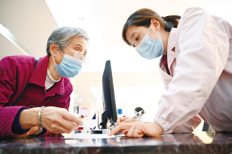 2012年以來,三明市勇于涉“深水區”、敢于啃“硬骨頭”,闖出了一條破解醫改難題的新路子。圖為福建省三明市第一醫院的醫保辦工作人員(右)向前來咨詢藥品報銷問題的居民講解相關政策。 新華社記者 姜克紅/攝
