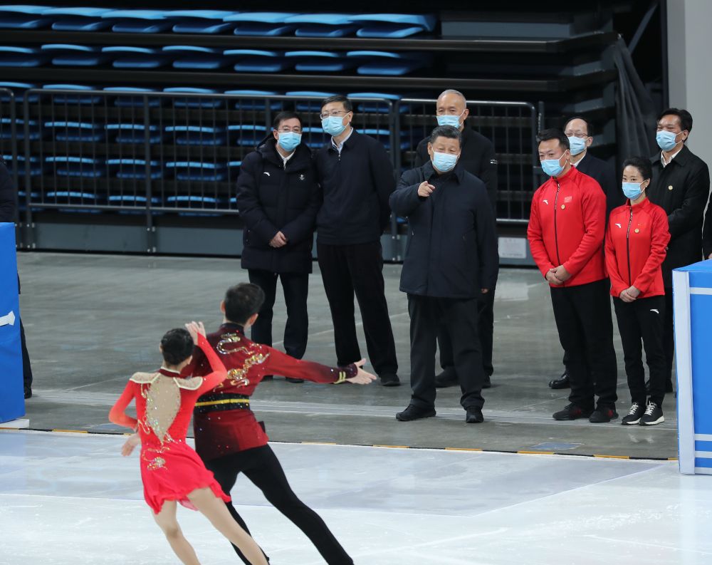 2021年1月18日,習近平在位于北京市海淀區的首都體育館考察調研,了解運動場館建設和運動員參賽備戰等情況,看望慰問運動員、教練員。新華社記者 姚大偉 攝