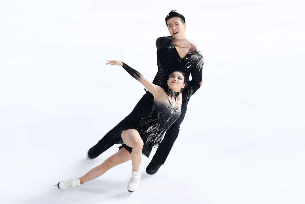 2020年11月7日,中國組合王詩玥/柳鑫宇(后)在冰舞自由舞比賽中。新華社記者 鞠煥宗 攝