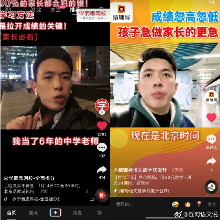 未來(lái)網(wǎng)記者還注意到,此次“撞臉”營(yíng)銷(xiāo)事件并非偶然,在線(xiàn)大班課品牌學(xué)而思網(wǎng)校和猿輔導(dǎo)的短視頻廣告也紛紛“中招”。在廣告中,一名年輕男子,角色從“從業(yè)6年的中學(xué)老師”搖身一變成為了“為孩子著急的父親”。