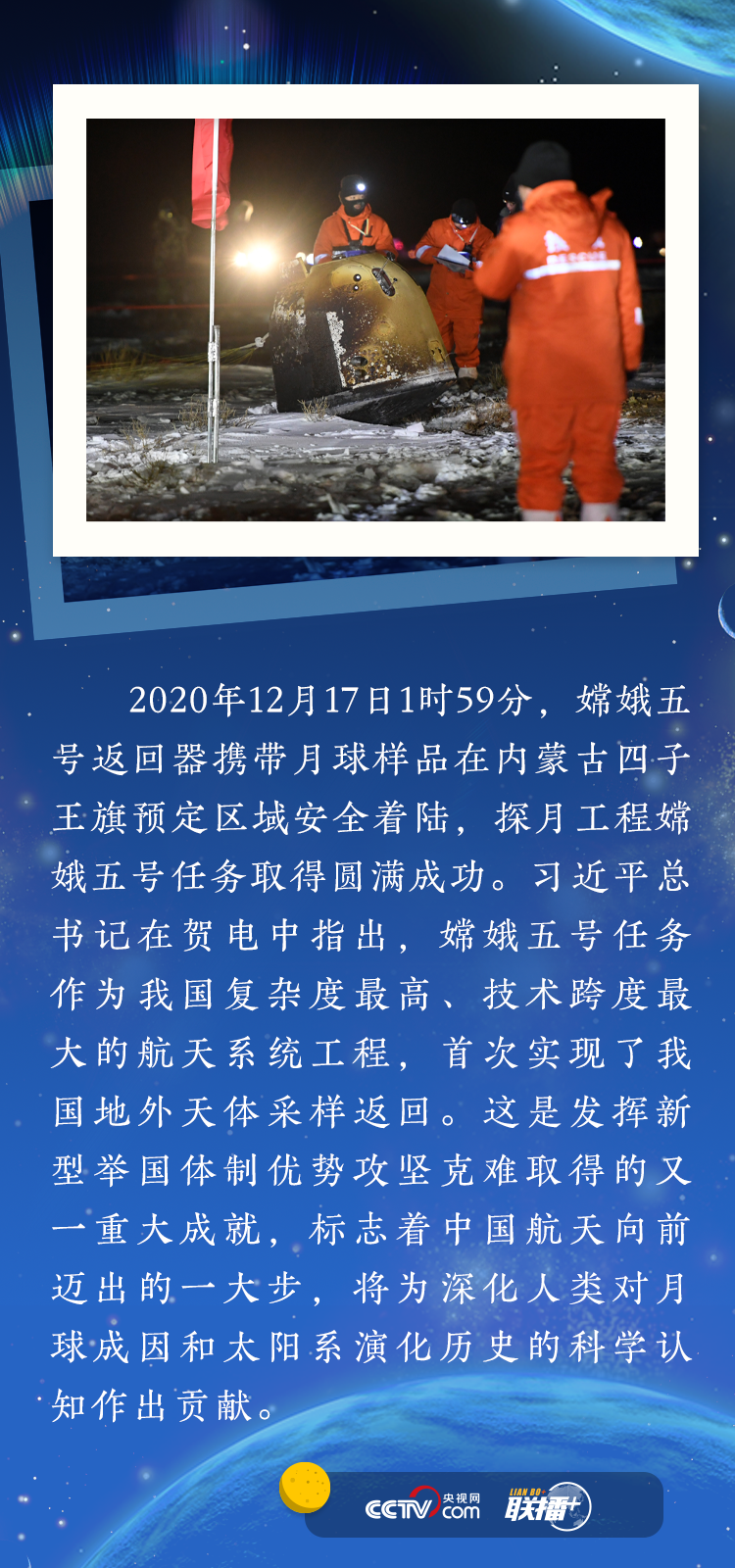 聯(lián)播+2月22日,習(xí)近平總書記在北京人民大會堂會見探月工程嫦娥五號任務(wù)參研參試人員代表并參觀月球樣品和探月工程成果展覽。他強(qiáng)調(diào),要弘揚(yáng)探月精神,發(fā)揮新型舉國體制優(yōu)勢,勇攀科技高峰,服務(wù)國家發(fā)展大局,一步一個腳印開啟星際探測新征程,不斷推進(jìn)中國航天事業(yè)創(chuàng)新發(fā)展,為人類和平利用太空作出新的更大貢獻(xiàn)。