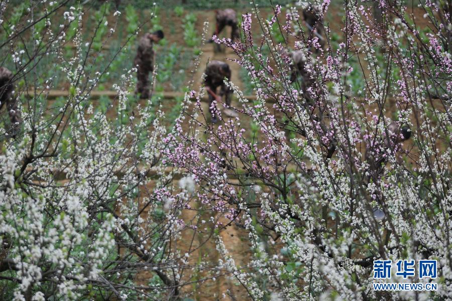 貴州省畢節市七星關區人武部組織民兵到對口幫扶的海子街鎮幫助村民干農活(2020年3月18日攝)。新華社發(王慶澤 攝)