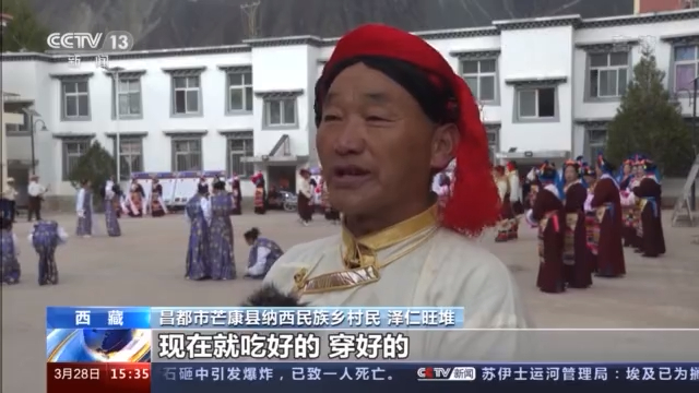 昌都市芒康縣納西民族鄉村民 澤仁旺堆:我們家來說也有翻天覆地的變化,現在的話就吃好的、穿好的,每天都是開開心心。在這樣的環境下,我們在這里生活,心里感到很高興,很快樂。